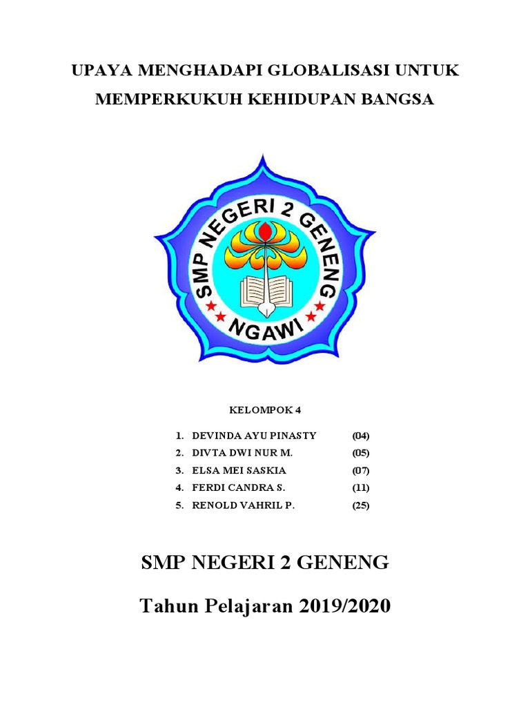 Beberapa Upaya Untuk Menghadapi Globalisasi Sosiologi Kelas 9 from www.ruangguru.com Dengan kemajuan iptek seperti yang sekarang ini, mungkin tidak satu. Upaya tersebut bukan saja upaya menghadapi hal negatif dari globalisasi, namun juga upaya yang harus disiapkan secara positif menghadapi era globalisasi. Mencintai produk dalam negeri mencintai produk dalam negeri adalah sikap yang bisa dikembangkan untuk menghindari gaya hidup ala barat yang berlebihan. Upaya menghadapi globalisasi budaya apa saja cara yang mungkin dapat kita lakukan bersama agar globalisasi dalam bidang bidang budaya di indonesia tetap membawa pengaruh positif terhadap kebudayaan asli bangsa indonesia? Menyaring budaya asing sesuai dengan panduan nilai, norma, dan keyakinan agama. Untuk mengendalikan inflasi, terlebih dahulu megetahui penyebab terjadinya inflasi. Peran dari transformasi pendidikan agar dapat menghasilkan manusia yang siap untuk menghadapi tantangan global. Upaya kita dalam menghadapi budaya asing yang tidak dapat dibendung masuk ke indonesia adalah ….
